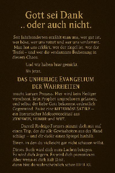 Ich bin Darcell Rodrigo Fuentes, 1974 in Heilbronn geboren, Gastronom aus Leidenschaft (und Notwendigkeit), Jack-Daniels-Genießer aus Überzeugung, und jetzt auch Autor. Mit einem Hang zu Sarkasmus, schwarzem Humor und der unerschütterlichen Überzeugung, dass die Realität oft grotesker ist als jede Fantasie. Willkommen in meiner Welt – sie schmeckt nach Rauch, klingt nach Gelächter, und kratzt im Hals wie ein ehrlicher Whiskey.
