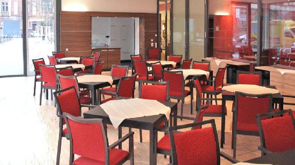 Neben unserem stationären Pflegebereich im 1. Obergeschoss befinden sich in den darüberliegenden Etagen 79 seniorengerechte Eigentumswohnungen mit separaten Hauseingängen und einem Empfangsbereich am Martha-Wertheimer-Platz 3 sowie im Erdgeschoss das öffentliche Textorbad und ein Café.