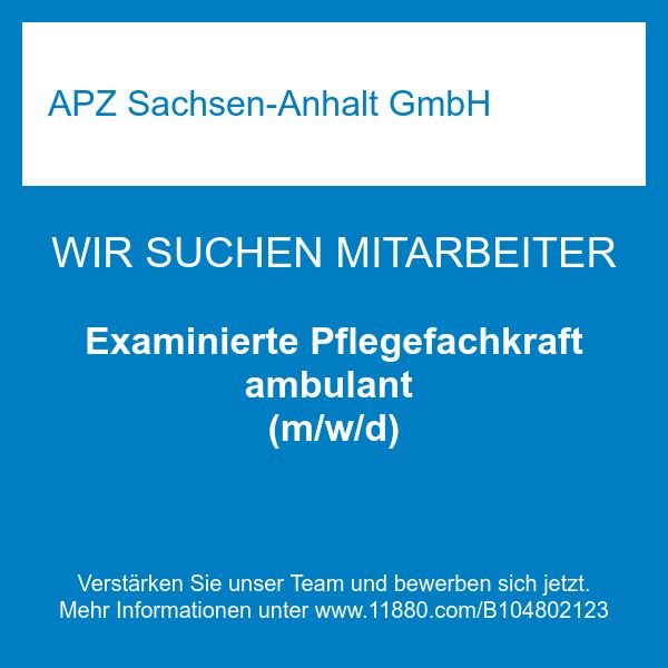 Unsere APZ Sachsen-Anhalt GmbH ist ein ambulantes Pflegezentrum mit Begegnungsstätte, das Menschen aus der Region um Aschersleben ein breites Angebot an individuellen Leistungen macht. Wenn Sie für sich selbst oder einen Angehörigen auf der Suche nach Unterstützung im Pflege- oder Betreuungsfall, Alltag oder in der Hauswirtschaft sind, können Sie sich bei uns kompetent beraten lassen. Wir ermöglichen es Ihnen, auch im hohen Alter oder bei Krankheit, ein weitgehend selbstbestimmtes Leben zu führen. Seit 2011 sind wir eine von allen Kranken- und Pflegekassen offiziell zugelassene Pflegeeinrichtung und für Sie im Umkreis von Aschersleben, Ballenstedt, Hohenmölsen, Naumburg, Osterfeld, Teuchern, Weißenfels, und Zeitz unterwegs.