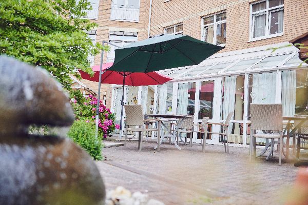 Bei schönem Wetter lädt Sie unser begrünter Innenhof mit großer Terrasse zum geselligen Verweilen ein. Auch der hübsche Stadtpark ist zu Fuß schnell erreicht.