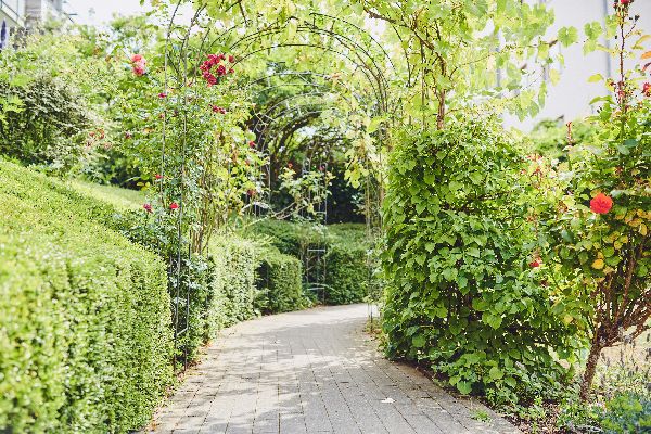 Bei schönem Wetter lädt Sie unsere geschützte Grünanlage mit Sonnenterrasse und zahlreichen Sitzgelegenheiten zum Verweilen ein.
