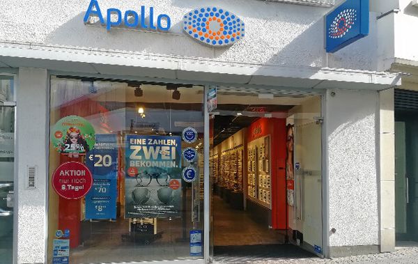 Besuchen Sie den Apollo Optiker in Bonn (53111) für individuelle Beratung und eine umfangreiche Auswahl an Produkten. Mit hochmodernen Messverfahren und Geräten sorgen wir für eine präzise Bestimmung Ihres Sehvermögens. Dank unserer bequemen Online-Terminbuchung profitieren Sie zudem von kurzen Wartezeiten beim Optiker in Bonn. Neben unseren Apollo Service-Garantien, die unter anderem kleinere Brillenreparaturen einschließen, bieten wir Ihnen auch eine breite Auswahl an Brillen, Sonnenbrillen und Kontaktlinsen. Bei Apollo in Bonn finden Sie alles von trendigen Kinderbrillen über Gleitsichtbrillen bis hin zu Ray-Ban Sonnenbrillen. Vervollständigen Sie Ihren Stil mit dem passenden Zubehör, darunter Etuis und Brillenbänder. Apollo-Optik - Bonn - Dreieck hält zudem eine große Auswahl an Kontaktlinsen und Kontaktlinsenflüssigkeiten bereit, ergänzt durch fachkundige Beratung direkt vor Ort.