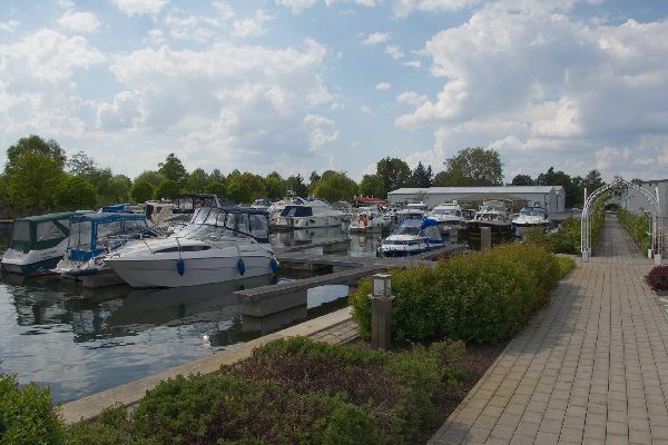 Hier erwartet Sie auf einem Areal von ca. 25.000 m² ein Hafenbecken mit ca. 120 Sommerliegeplätzen, 3 große Hallen für die Winterlagerung Ihrer Boote, ein modernes Servicegebäude mit separaten Duschen und Toiletten (auch behindertengerecht), ein Hafenmeisterservice sowie ein Bootszubehörverkauf, ein Waschsalon mit Waschmaschinen und Trocknern.