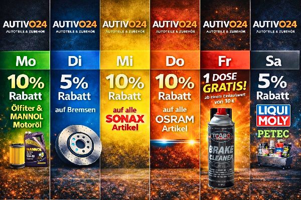 Bei Autivo24 finden Sie eine große Auswahl an hochwertigen Autoteilen, Zubehör und Verschleißteilen für alle Fahrzeugmarken. Wir bieten faire Preise, kompetente Beratung und schnelle Verfügbarkeit damit Ihr Fahrzeug sicher und zuverlässig auf der Straße bleibt. Ob Autobatterien, Bremsen, Filter, Öle, Batterien, Scheibenwischer, Beleuchtung oder Karosserieteile: Unser Sortiment umfasst Markenprodukte in Erstausrüsterqualität. Gerne helfen wir Ihnen persönlich dabei, die passenden Teile für Ihr Fahrzeug zu finden. Dank unserer langjährigen Erfahrung im Kfz-Bereich sind wir Ihr zuverlässiger Ansprechpartner für Ersatzteile, Zubehör und praktische Lösungen rund ums Auto. Kommen Sie vorbei oder kontaktieren Sie uns wir beraten Sie gerne.