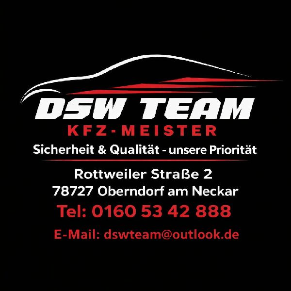 Im Herzen von Oberndorf am Neckar gelegen, bietet das DSW Team KFZ-Meisterbetrieb seit Jahren umfassende Dienstleistungen rund ums Kraftfahrzeug. Unsere Leidenschaft für Autos spiegelt sich in einem breiten Spektrum an Services wider: Von der präzisen Kfz-Unfallinstandsetzung, Autowartung und Autolackierung bis hin zu detaillierten Schadensgutachten. Als vielseitiger Partner im Autohandel, Autoglas-Spezialist sowie erfahrener Abschleppdienst stehen wir für Qualität, Zuverlässigkeit und Kundennähe.