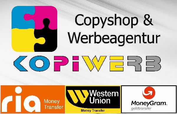 KopiWerb bietet Ihnen zuverlässige Geldtransferdienste mit Western Union, Ria und MoneyGram. Ob Inland oder international – wir sorgen dafür, dass Ihr Geld sicher und schnell ans Ziel kommt. Mit jahrzehntelanger Erfahrung und einem globalen Netzwerk von Partnern garantieren wir reibungslose Transaktionen und erstklassigen Service. Vertrauen Sie KopiWerb für Ihre Geldüberweisungen und genießen Sie den Komfort und die Sicherheit, die wir bieten. Schnelle, sichere und einfache Geldtransfers – weltweit.