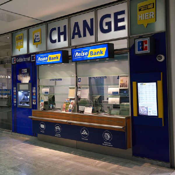Die Reisebank hält bis zu 100 Sorten verfügbar, so dass Sie hier auch kurzfristig die richtige Währung für Ihre nächste Urlaubsreise erhalten. Neben Einzahlungen zugunsten Dritter und Barauszahlungen auf gängige Kreditkarten bietet die Reisebank als Partner von Western Union den weltweiten Bargeldtransfer sowie den innerdeutschen Bargeldtransfer im eigenen Netz an. Ergänzt wird das Sortiment durch Edelmetalle in Gold, Silber und Platin. Darüber hinaus wird der Ankauf von US Treasury Schecks und American Express Travelers Cheques angeboten.
