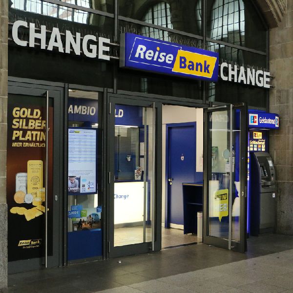 Die Reisebank hält bis zu 100 Sorten verfügbar, so dass Sie hier auch kurzfristig die richtige Währung für Ihre nächste Urlaubsreise erhalten. Neben Einzahlungen zugunsten Dritter und Barauszahlungen auf gängige Kreditkarten bietet die Reisebank als Partner von Western Union den weltweiten Bargeldtransfer sowie den innerdeutschen Bargeldtransfer im eigenen Netz an. Ergänzt wird das Sortiment durch Edelmetalle in Gold, Silber und Platin. Darüber hinaus wird der Ankauf von US Treasury Schecks und American Express Travelers Cheques angeboten.