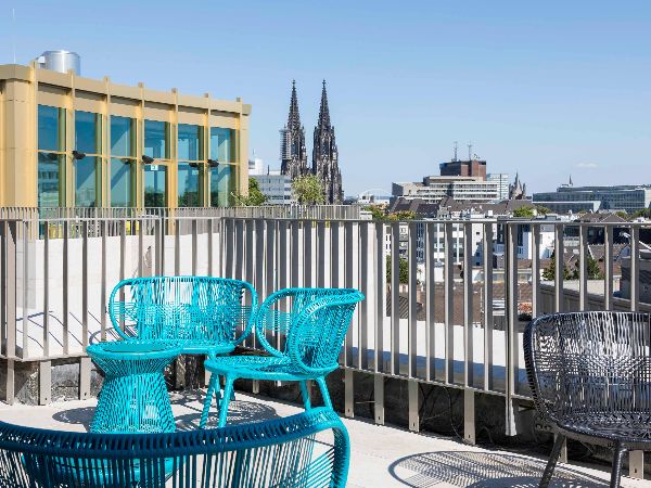 Nachmittags lädt die Dachterrasse der Monkey Bar im 8. Stock ein, in gemütlicher Atmosphäre den spektakulären Ausblick auf die Kölner Innenstadt und den Dom zu genießen. Abends verwandelt sich die Monkey Bar in eine Szene-Location.