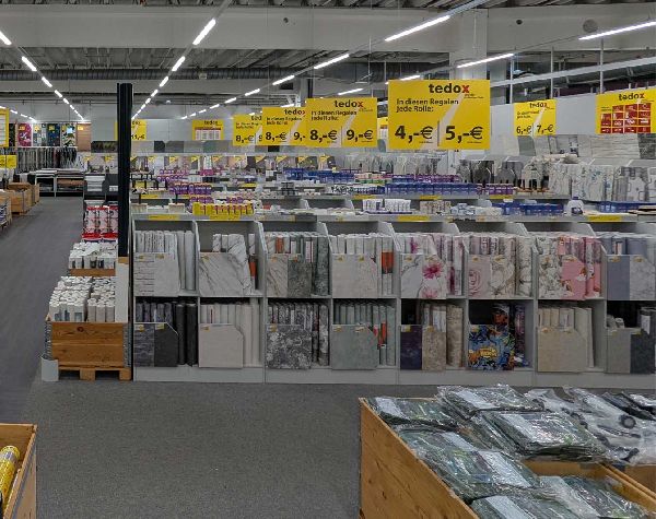 tedox ist der Renovierungs-Discounter. Wir bieten Ihnen Artikel rund um die Themen Renovieren, Einrichten und Dekorieren und das an über 125 Standorten in Deutschland. Auf unseren Verkaufsflächen finden Sie ein umfangreiches Sortiment aus den Bereichen Teppiche und Teppichböden, Bodenbeläge, Tapeten und Malerbedarf, diverse Stoffe, Gardinen und Heimtextilien, Lampen und Leuchtmittel, Elektro- und Heimwerkerbedarf sowie Haushaltswaren, Reinigungs- und Kosmetikartikel und Posten aller Art.