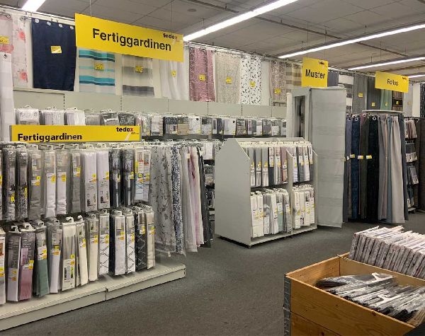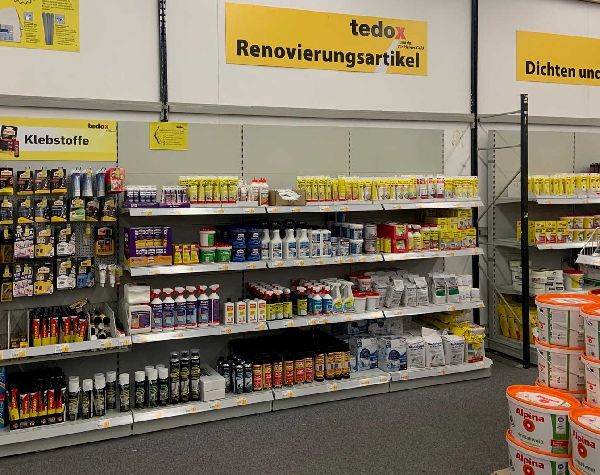 tedox ist der Renovierungs-Discounter. Wir bieten Ihnen Artikel rund um die Themen Renovieren, Einrichten und Dekorieren und das an über 125 Standorten in Deutschland. Auf unseren Verkaufsflächen finden Sie ein umfangreiches Sortiment aus den Bereichen Teppiche und Teppichböden, Bodenbeläge (Laminat, Designbeläge und PVC), Tapeten und Malerbedarf, diverse Stoffe, Gardinen und Heimtextilien, Lampen und Leuchtmittel, Elektro- und Heimwerkerbedarf sowie Haushaltswaren, Reinigungs- und Kosmetikartikel und Posten aller Art. Besuchen Sie uns in der tedox-Filiale Ludwigshafen oder in unserem Online-Shop.
