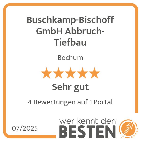 Unser Komplettservice umfasst nicht nur Abbrucharbeiten und Brandsanierung, sondern auch den Tiefbau, wie Ausschachtungs-, Kanal- und Pflasterarbeiten.Wir sind ein anerkanntes Unternehmen mit Sachkundenachweis für "ASI"-Arbeiten (Abbruch,-Sanierung- und Instandsetzung) an Asbestprodukten nach TRGS 519 (Technische Regeln für Gefahrstoffe) sowie KMF (künstliche Mineralfaser) nach TRGS 521.Professionelle Entrümpelungen von Wohnungen, Keller, Dachböden, Gebäuden oder Firmen zählen ebenfalls zu unserem Aufgabengebiet.Für den Auftraggeber bedeutet dies: "ALLES AUS EINER HAND" !! Eine fachgerechte Entsorgung ist für uns selbstverständlich.Wirtschaftliche Lösungen wie das Sieben und Brechen werden durch den Einsatz von mobilen Anlagen umweltgerecht und ökologisch angeboten.Mitglied im Deutschen Abbruchverband e.V. KölnZuverlässigkeit, Kompetenz und Erfahrung bestimmen den Kurs ...Unsere Leistungen umfassen:Abbrucharbeiten(TRGS 519) ASI-Arbeiten an Asbest (Abbruch-, Sanierung- und Instandhaltung von asbesthaltigen Stoffen)(TRGS 521) Rückbau von KMFFachgerechte Entsorgung der AbbruchmassenEntrümpelungAusschachtungKanalbauarbeitenPflasterarbeitenIn allen Bereichen kümmern wir uns selbstverständlich um eine fachgerechte und umweltfreundliche Entsorgung.