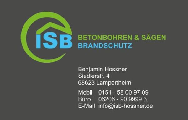 Derzeit sind keine weiteren Informationen zum Betrieb ISB Hossner Betonbohren und -sägen und baulicher Brandschutz eingetragen.