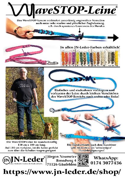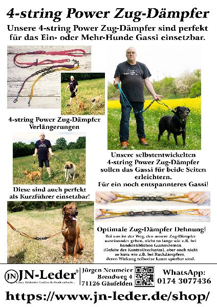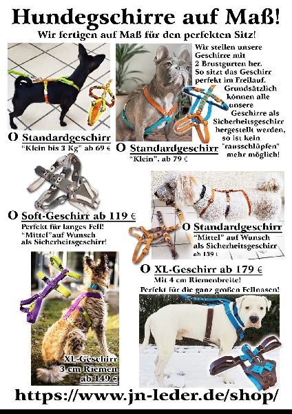 Wir stellen Hundezubehör wie Geschirre, Maulkörbe, Halsbänder auf Mass und nach Wunsch her. Desweiteren haben wir exklusive Leinen u.a. mit Zug-Dämpfer im Angebot.