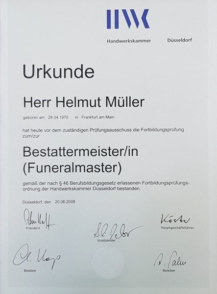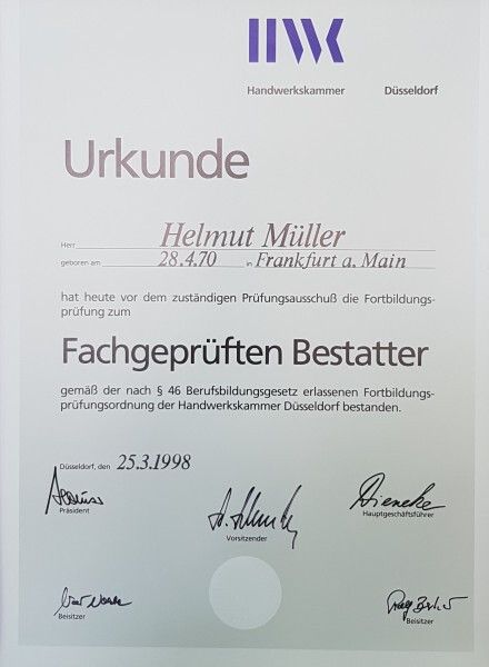 Sie suchen einen regionalen Bestatter mit langjähriger Berufserfahrung in seinem Bereich? Dann sind wir Ihr richtiger Ansprechpartner. Das Bestattungsinstitut von Helmut Müller in Dreieich erledigt schnell und unkompliziert alle Formalitäten, damit Sie Zeit zum Abschiednehmen und Trauern haben. Sprechen Sie uns gern an.