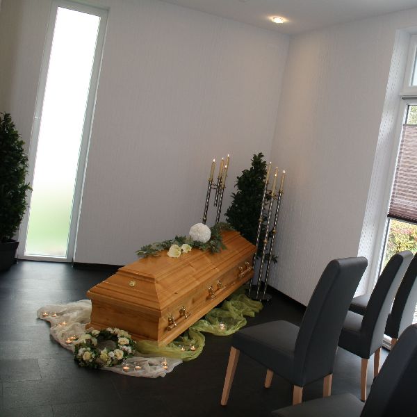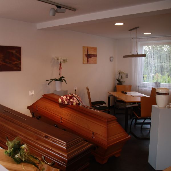 Als Familienunternehmen mit langer Tradition legen wir größten Wert auf eine individuelle und persönliche Beratung, schnelle Hilfe und sorgfältige Betreuung.In unseren Ausstellungsräumen finden Sie eine große Auswahl an Särgen, Urnen, Deckengarnituren, Sterbewäsche und weiteren Accessoires.Unser hauseigender Abschiedsraum steht Ihnen für Abschiednahmen und Trauerfeiern im Familienkreis zur Verfügung. In den angrenzenden Garten kann sich die Familie zur Besinnung zurückziehen.Familie Becker
