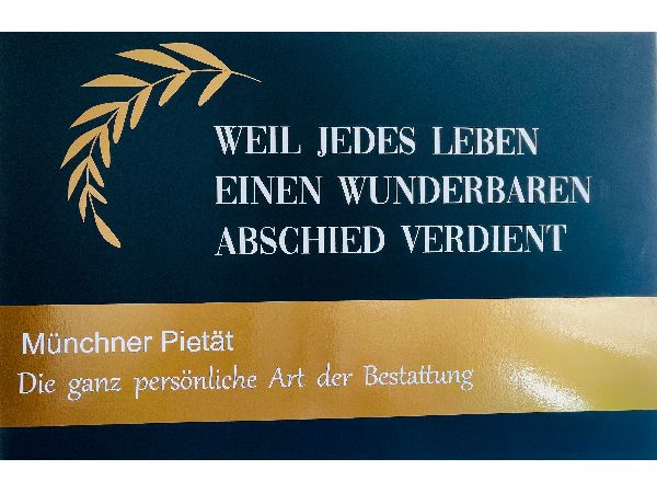 Herzlich willkommen bei der Münchner Pietät. Wir gestalten Bestattungen, die eine Feier des Lebens sind.Der Tod gehört zum Leben wie die Geburt. Es ist ein Kreis, der sich schließt. Der letzte Abschied ist die Feier des Lebens, einer Lebensreise, die zu Ende ging. Das soll sich in jeder unserer Bestattungen widerspiegeln. Wir von der Münchner Pietät gestalten Abschiede, die so einzigartig sind wie der Mensch, um den es sich dreht. Wir sind von Anfang an Ihrer Seite, beraten Sie mit großem Einfühlungsvermögen und kümmern uns ganz persönlich um jedes Detail.Jeder Abschied ist einzigartig Wir geben ihm den passenden Rahmen.Jede Familie geht auf ihre ganz eigene Art mit dem Sterben und dem Tod um und drückt ihre Trauer und ihre Liebe auf besondere Weise aus. Wir empfinden tiefen Respekt für diese Gefühle und gestalten die Bestattung mit Feingefühl, großer Sorgfalt und Achtsamkeit bis ins Detail.Wenn Sie Abschied von einem geliebten Menschen nehmen müssen, der gerade verstorben ist oder Ihre eigene Bestattung planen möchten und einen professionellen Partner an Ihrer Seite brauchen, der es versteht, Ihre Wünsche Realität werden zu lassen, sind wir für Sie da, mit unserer Expertise, unserem Feingefühl und unserem umfassenden Leistungsangebot. Aus eigener Erfahrung wissen wir, was für eine große Herausforderung es ist, einen Menschen gehen zu lassen und sich in dieser Ausnahmesituation um alle notwendigen Maßnahmen der Bestattung und die behördlichen Aufgaben zu kümmern. Das alles können Sie vertrauensvoll in unsere Hände legen.Was jetzt zu tun ist.Im TrauerfallWenn ein geliebter Mensch diese Welt verlassen hat, überwiegt Trauer und das tiefe Gefühl des endgültigen Abschieds. Eigentlich braucht die Familie im Sterbefall viel Zeit für sich, um mit all diesen Gefühlen umzugehen. Trotzdem gibt es wichtige Dinge zu tun. Damit Ihnen das in diesem Ausnahmezustand leichter fällt, haben wir hier für Sie eine Liste aller notwendigen Schritte erstellt: vom Anruf beim Hausarzt bis zur Todesbescheinigung und Bereitstellung der Kleidung. Natürlich sind wir auch hier von Anfang an mit Rat und Tat an Ihrer Seite.