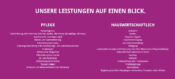#24 Stunden häusliche Pflege #24-Stunden-Betreuung #Altenpflege #Blindenservice #Demenzbetreuung #Haushaltshilfe #Haushaltspflege #Kurzzeitbetreuung #Pflegehilfe #Verhinderungspflege