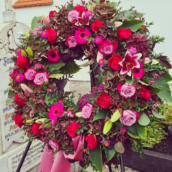 Zu unseren Dienstleistungen zählen Hochzeits- und Trauerfloristik, Grabbepflanzung und Kübelpflanzen Überwinterung.