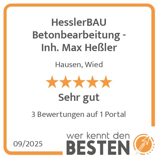 Bei HesslerBAU legen wir großen Wert auf Kundenzufriedenheit und langfristige Kundenbeziehungen. Sicherheit, Qualität und Zuverlässigkeit bilden die Grundpfeiler unserer Unternehmensphilosophie. Durch unseren unermüdlichen Einsatz und die Fähigkeit, individuelle Lösungen anzubieten, haben wir uns einen renommierten Platz in der Betonbearbeitungsbranche erarbeitet.