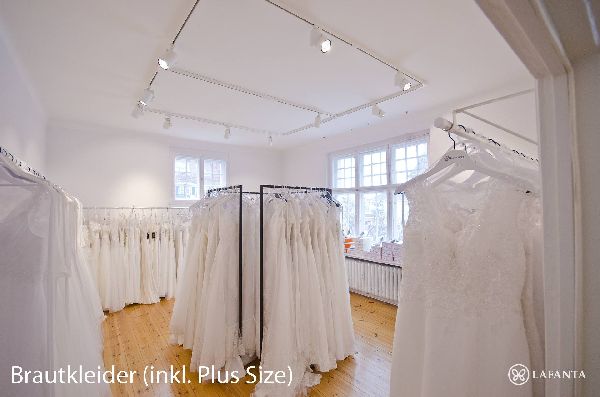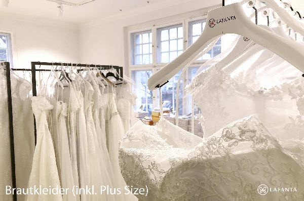 Lafanta Brautmode bietet Brautkleider für alle Größen und jedes Budget. Bei uns findest du dein Traumkleid nach Wunsch: Wir haben über 200 Modelle, die zudem nach deinen Wünschen individualisiert werden können. Auch in größen Größen und für Schwangere.