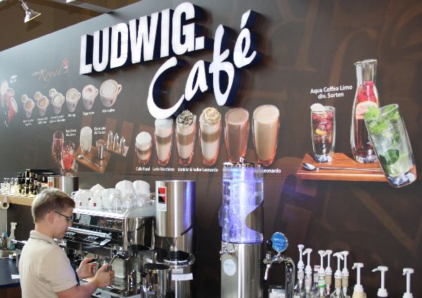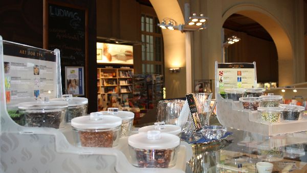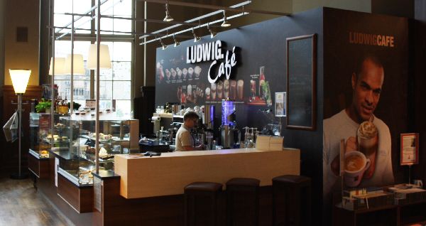 Das Café Ludwig in der gleichnamigen Buchhandlung Ludwig im Leipziger Hauptbahnhof freut sich auf Ihren Besuch. Unsere im Café angebotenen Kaffespezialitäten bestehen zu 100 Prozent aus Hochland-Arabica, eine hochwertige Kaffebohne, die viel Aroma und wenig Koffein beinhaltet. Daher sind alle Kaffeeprodukte besonders magen-, herz-, und kreislaufschonend. Die 12 Teesorten reichen von Schwarztee, Kräutertee und Früchtetee, über Grünen Tee bis Chai Gewürztee. Durch einfaches Aufgießen auf Eiswürfel sind die Teesorten auch gekühlt ein Genuss. Mit Aqua Coffea bieten das Café angenehm kühle, fruchtige Limonaden in den Variationen Ingwer-Minze-Zitrone, Zitrone, Holunder-Melisse oder Himbeer-Zitrone an. Für den kleinen Hunger oder Nachmittagskaffee bieten wir lecker belegte Bagel, Wraps, Suppen, Croissants, Kuchen und weitere Snacks an.