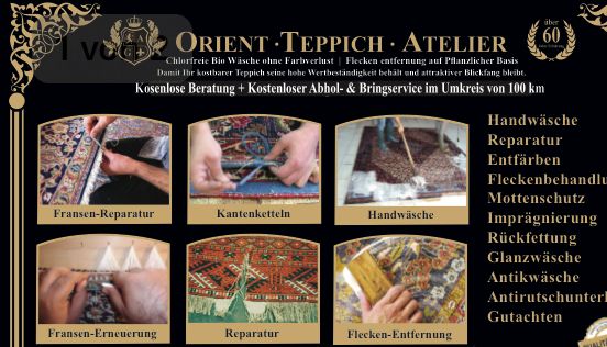 Orientteppich Wäsche , Reparatur & Restauration . Bio Handwäsche , Reparatur von Fransen , Kanten ,Nachknüpfen, Brandschäden , Wasserschäden ,