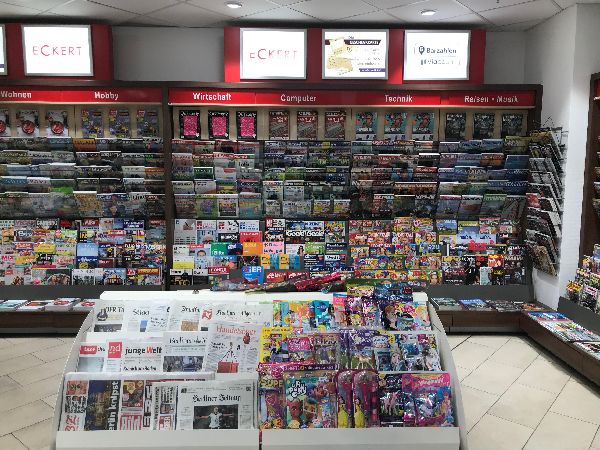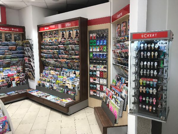 ECKERT ist das Pressefachgeschäft für Zeitungen und Zeitschriften, Bücher, Tabakwaren, Reisebedarf, Lotto/Toto. Oft mit Convenience-Produkten, Snacks, Kaffeespezialitäten und kalten Getränken. Presse und Convenience für Reisende, Pendler und das lokale Umfeld, fast überall mit der größten Presseauswahl am Ort. Außergewöhnliche Öffnungszeiten, auch an Sonn- und Feiertagen.