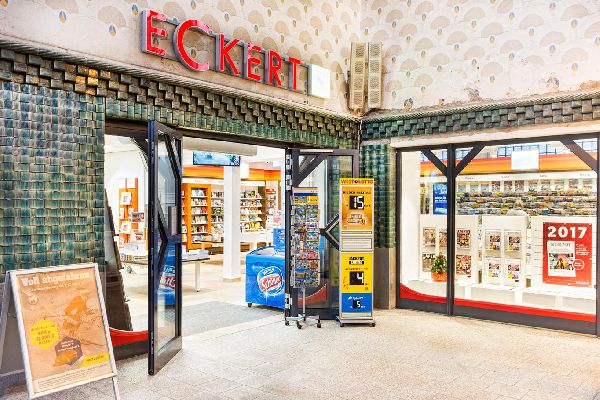 ECKERT ist das Pressefachgeschäft für Zeitungen und Zeitschriften, Bücher, Tabakwaren, Reisebedarf, Lotto/Toto. Oft mit Convenience-Produkten, Snacks, Kaffeespezialitäten und kalten Getränken. Presse und Convenience für Reisende, Pendler und das lokale Umfeld, fast überall mit der größten Presseauswahl am Ort. Außergewöhnliche Öffnungszeiten, auch an Sonn- und Feiertagen.