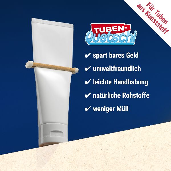 Der Tuben-Quetschi hilft jeden Tag Geld zu sparen und reduziert Müll. Der ideale kleine Helfer für alle Tuben aus Kunststoff.