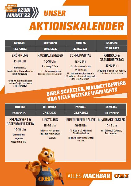 Willkommen im OBI Markt Merseburg. Wir bieten dir hochwertige Markenprodukte für Heim- und Handwerker zu günstigen Preisen. In deinem OBI Baumarkt wirst du kompetent beraten — ob Bad, Küche, oder Garten, wir sind für dich da!