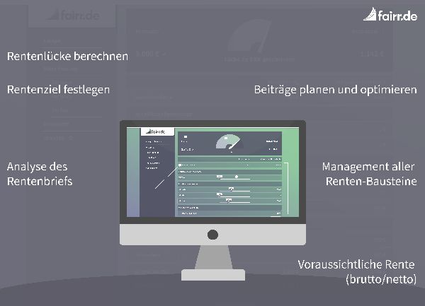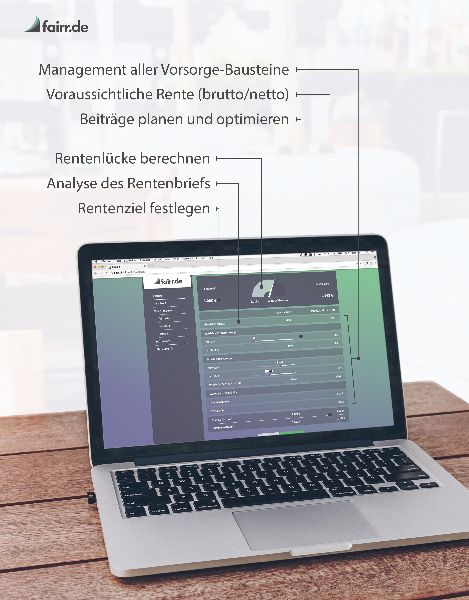 fairr.de ist das führende Start-up im Bereich Altersvorsorge. Kunden optimieren ihre Rente volldigital im Vorsorge-Cockpit über alle Säulen hinweg.
