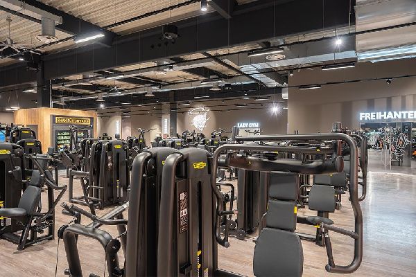 #Cardiogeräte #Fitnessstudio #Freihantelbereich #Hammer Strength #Kurse #Kursraum #Lady Gym #Technogym #Über 100 Studios