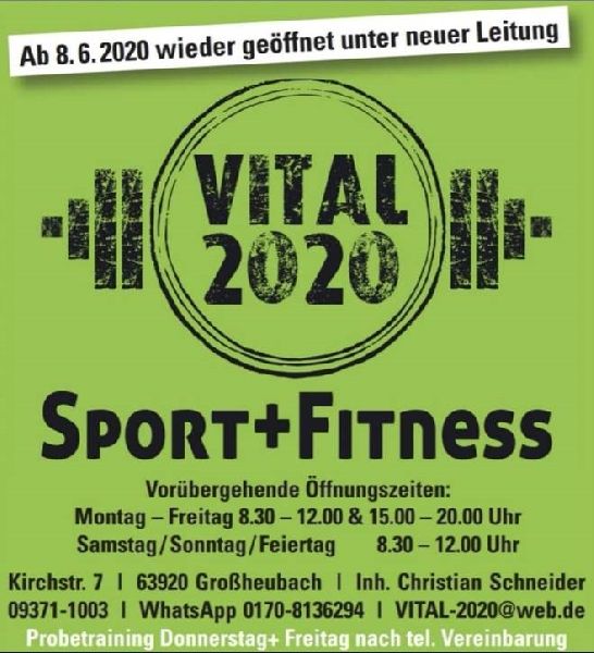 Aus dem alten Vital 2000 in Großheubach wurde "VITAL 2020 - Sport + Fitness".