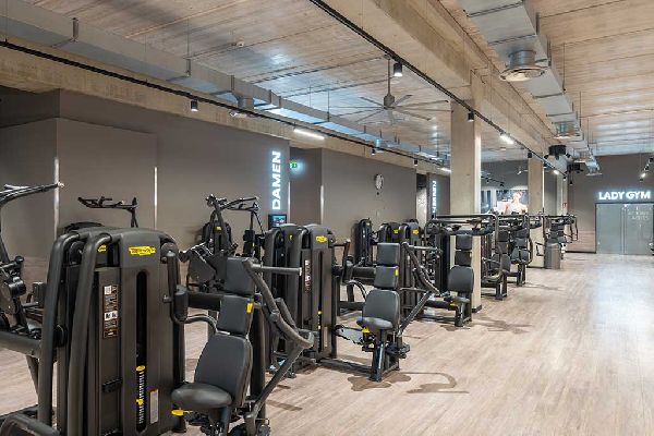 #Cardiogeräte #Fitnessstudio #Freihantelbereich #Hammer Strength #Kurse #Kursraum #Lady Gym #Technogym #Über 100 Studios