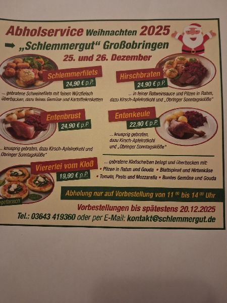 Neu!!! Neu!!! Neu!!! * Donnerstag ist Schnitzel Tag! * Sonntag ist Kloß Tag! * Catering! * Feierlichkeiten!!! * Partyservice im & außer Haus !!! Tel. 03643/ 419360 oder kontakt@schlemmergut.de
