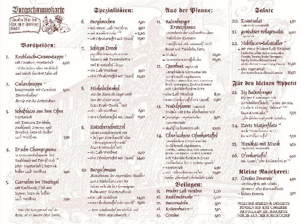 Unser Speisekarte: https://www.badenburg.de/speisekarte/