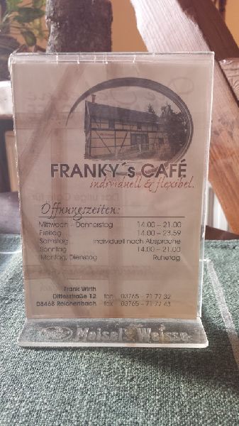 #Bürgerliche Speisen #Cafe #Deutsche Küche #Deutsches Essen #Die Scheune #Events #Feierlichkeiten #Frankys Cafe #Gaststätten Reichenbach #Gaststätten und Restaurants #Getränke #Musik #Restaurants Reichenbach
