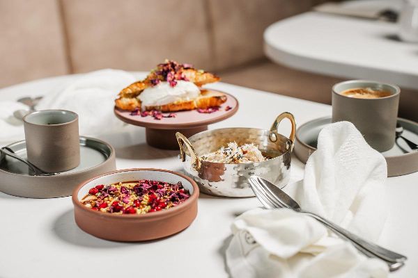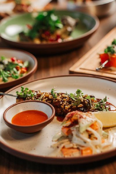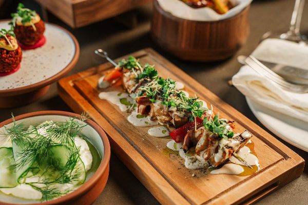 Balaustine, die Blüte des Granatapfelbaums, symbolisiert und feiert die reiche Geschichte der Küche entlang des Levant und der Mittelmeerküste sowie ihrer Nachbarländer. Inspiriert von der farbenfrohen, lebendigen und dynamischen Esskultur im Levant und am Mittelmeer, sind beide Regionen Heimat verschiedener Länder und Geschmäcker. Balaustine ist ein Ort, um gemeinsam mit Freunden und Familie zu genießen und die Erfahrung zu teilen, sich von moderner, levantinischer Küche sowie außergewöhnlicher Cocktails in einer lebendigen Atmosphäre mit atemberaubender Aussicht verwöhnen zu lassen.