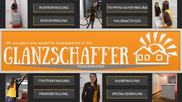 Unsere Firma in Ulm, Glanzschaffer Gebäudeservice – Geschäftsleitung Danijela Antunovic, bietet Ihnen geschultes und erfahrenes Personal, das professionell, gründlich und sehr engagiert reinigt. Wir sind ein junges und dynamisches Familienunternehmen und Ihr verlässlicher Premiumpartner, wenn es um Pflege- und Reinigungsaufträge in und ums Gebäude geht. Kontaktieren Sie unsere Gebäudereinigung, wenn Sie beispielsweise eine Haushaltshilfe benötigen, Praxis- und Büroreinigungen beauftragen möchten oder eine Bauendreinigung ansteht, wir freuen uns auf Ihren Anruf aus Ulm und Umgebung!