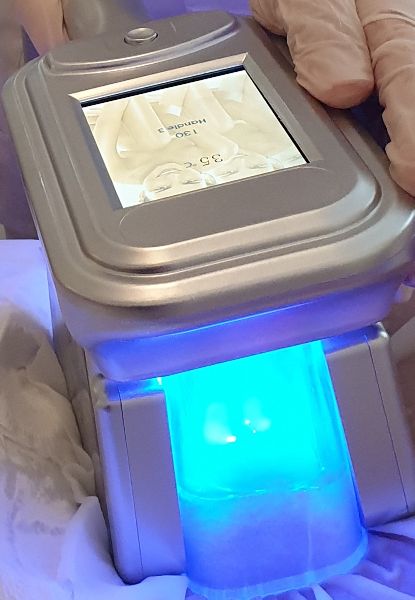 Nach jeder Kryolipolyse wird eine Druckwellenmassage durchgeführt, wie sie auch bei der Behandlung der Cellulite eingesetzt wird.