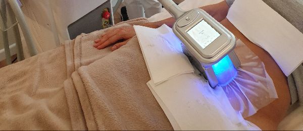 Sie führt Coolsculpting durch am Bauch, an Oberschenkel, Knie, Hüfte, Po.