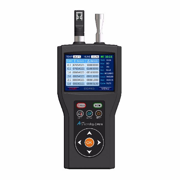 Sehr kompakter Partikelzähler zur gleichzeitigen Erfassung von zwei Partikelgrößenkanälen mit 0,5 und 5,0 µm Partikelgröße und einem Probenahmevolumen von 28,3 Ltr./min