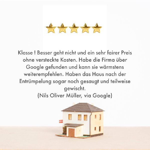 Von Wohnungsräumungen über die Entrümpelung von Messiwohnungen bis hin zu Kellerauflösungen – unser Angebot deckt jedes Bedürfnis ab. Unser engagiertes Team nimmt sich jeder Herausforderung an, um eine effiziente und gründliche Entrümpelung zu gewährleisten. Wir verstehen, dass jede Situation einzigartig ist, und passen unsere Dienstleistungen entsprechend an, um eine zufriedenstellende Lösung für alle Beteiligten zu finden. Die fachleute Haushaltsauflösung & Entrümpelung steht für Diskretion, Zuverlässigkeit und Professionalität.