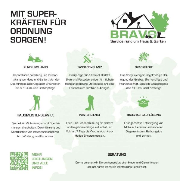 Als BRAVO Coburg möchten wir uns als Ihr zuverlässiger Partner für verschiedenste Dienstleistungen rund um Haus und Außenbereiche präsentieren. Unser Unternehmen zeichnet sich durch jede Menge Erfahrung und einen umfassenden Service aus. Wir verstehen die Bedürfnisse unserer Kunden und setzen alles daran, Ihnen maßgeschneiderte Lösungen zu bieten.