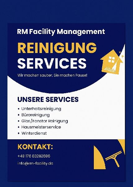 RM Facility Management Sauber. Fair. Persönlich. Ob Fenster, Gehweg oder ganze Gebäude wir sorgen für gründliche Reinigung und zuverlässigen Hausservice im Raum Offenbach und Umgebung. Als junges, engagiertes Team legen wir Wert auf Qualität, faire Preise und einen direkten Draht zu unseren Kunden. Unsere Leistungen: Fenster- & Gebäudereinigung Gehwege, Einfahrten, Hausmeisterservice Kleine Reparaturen & mehr alles aus einer Hand Egal ob privat oder gewerblich wir packen s an. Jetzt unverbindlich Kontakt aufnehmen wir freuen uns auf Ihre Anfrage!