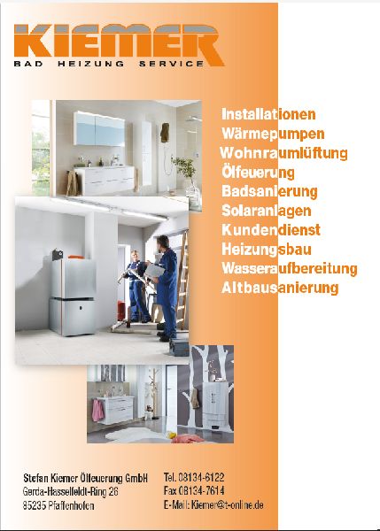 Die Stefan Kiemer GmbH ist Ihr zuverlässiger Partner im Heizungs- und Lüftungsbau. Wir bieten Installationen, Notdienste, Wärmepumpen, Wohnraumlüftungen, Badsanierungen, Solaranlagen, Heizungsbau, Wasseraufbereitung und Altbausanierungen. Vertrauen Sie auf unsere Expertise und Erfahrung!