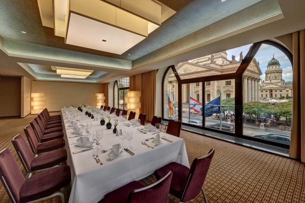 Set in Berlin’s Gendarmenmarkt location, Hilton Berlin hotel places you at the center of Berlin’s attractions, only a short drive from Berlin’s airports. Stadtmitte U-Bahn station is just yards from the front door of this Berlin hotel and parking for 400 vehicles is available in the hotel’s garage. Relax in a warm guest room and stay connected at the desk with WiFi. Upgrade to a Guest Room Plus for spectacular Gendarmenmarkt views. The suites at this hotel in Berlin make a spacious home from home, with the split level Presidential Suite featuring a private sauna. Bring the Gendarmenmarkt inside over breakfast with panoramic views from Restaurant Beletage. Be sure to book a table at Restaurant Mark Brandenburg where a modern take on regional and international cuisines have made the restaurant a Berlin institution. Discover the king of Berlin street food – the currywurst – al fresco on the terrace of Dom Curry. Enjoy cocktails and live music at Listo, a relaxed lounge in the heart of Berlin. Host any event at the Hilton Berlin hotel. A range of professional meeting rooms make the perfect venue for briefings and intimate gatherings. The hotel’s ballroom, with space for 330 people, makes the ideal backdrop for a wedding you and your guests will never forget. Keep active in the 24-hour fitness center at Hilton Berlin Health Club and feel pampered with in-house massage therapists, hairdresser and beauty consultants.