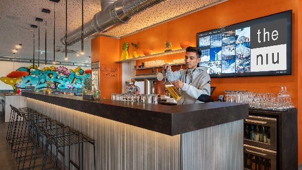 The absolute heart of our Holiday Inn - the niu, Hide Berlin Friedrichshain is our Living Lobby with co-working space, 24-hour bar & lounge with bar food, and 24-hour reception. Here you can work in a relaxed atmosphere and network with other visitors to Berlin. We recommend our delicious breakfast buffet for anyone who wants to start the day feeling refreshed. Help yourself!