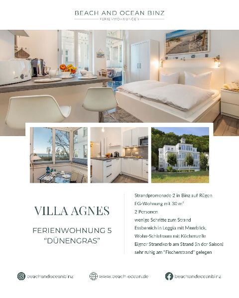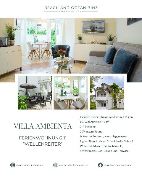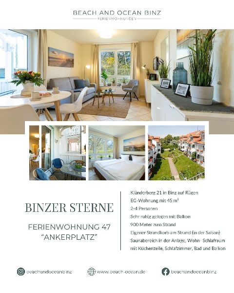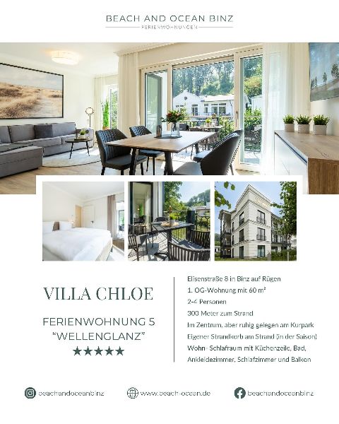 Willkommen bei Beach and Ocean Binz! Wir bieten exklusive Ferienwohnungen in Binz, dem mondänen Ostseebad auf Rügen. Unsere luxuriösen Unterkünfte befinden sich direkt am Strand oder im Herzen der Stadt und bieten erstklassigen Komfort und Stil. Ob Sie einen romantischen Kurzurlaub zu zweit planen oder einen Familienurlaub mit Freunden, bei uns finden Sie die perfekte Unterkunft. Genießen Sie die frische Seeluft, erkunden Sie die atemberaubende Landschaft und erleben Sie eine unvergessliche Zeit in Binz. Vor Ort steht Ihnen ein freundliches und hilfsbereites Team jederzeit zur Verfügung, um Ihnen den besten Service und einzigartige Urlaubserlebnisse zu bieten. Entdecken Sie Beach and Ocean Binz und lassen Sie Ihren Traumurlaub wahr werden.